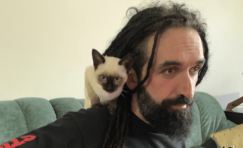 I’d say our walks. Tiki loves nothing more than going on walks in the sun, out around the neighbourhood on her lead. The looks I get as a heavily tattooed, long-haired man in an Adidas tracksuit walking a small, adorable cat on a lead are priceless.