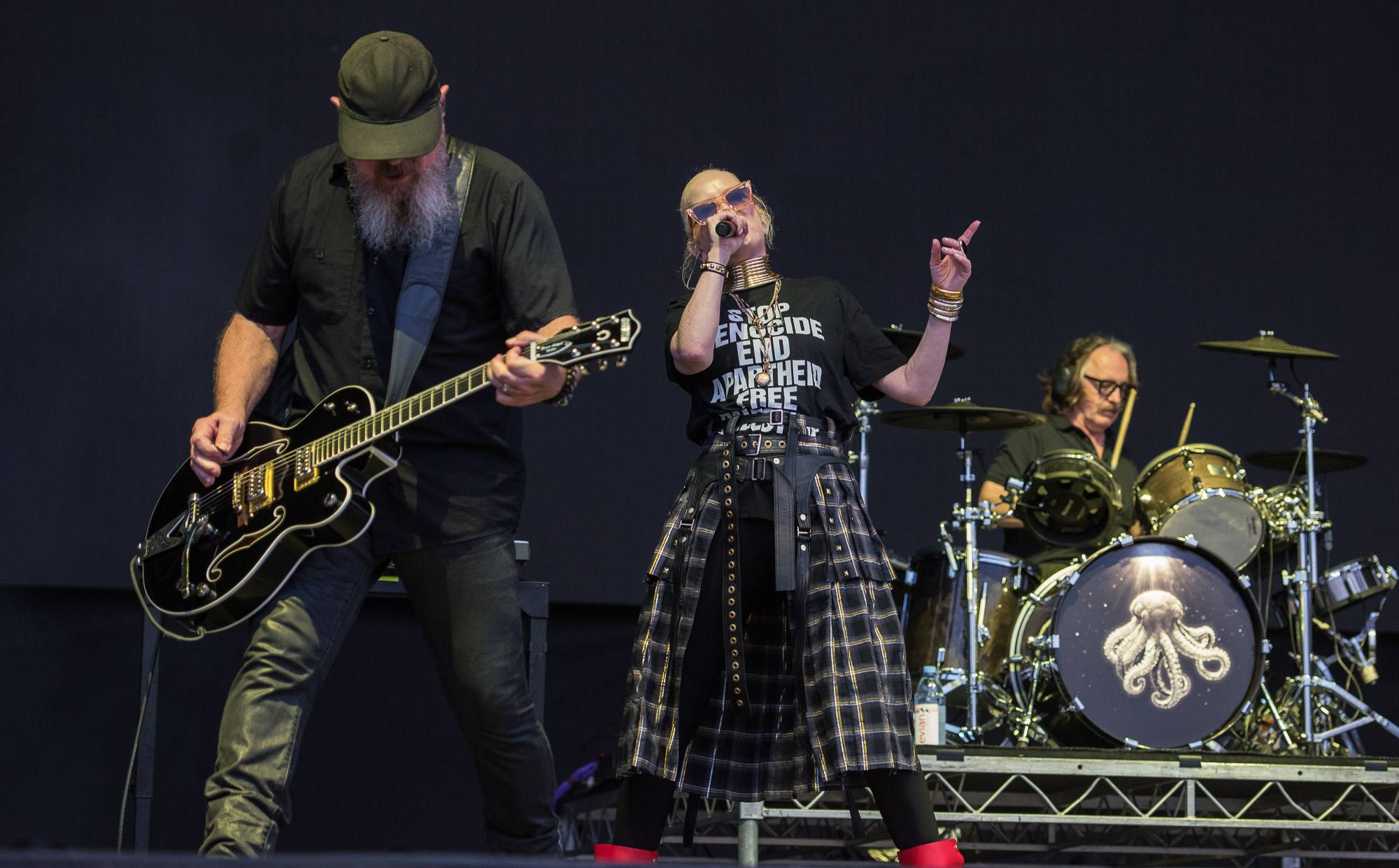 The Garbage frontwoman’s statement likely won’t come as a surprise to those who have seen their live sets or follow the band closely – her outfit each day has been a direct comment on Palestine, whether through text-filled shirts that read: “stop killing children,” to her entirely Palestinian-flag coloured outfit on Friday complete with a keffiyeh.