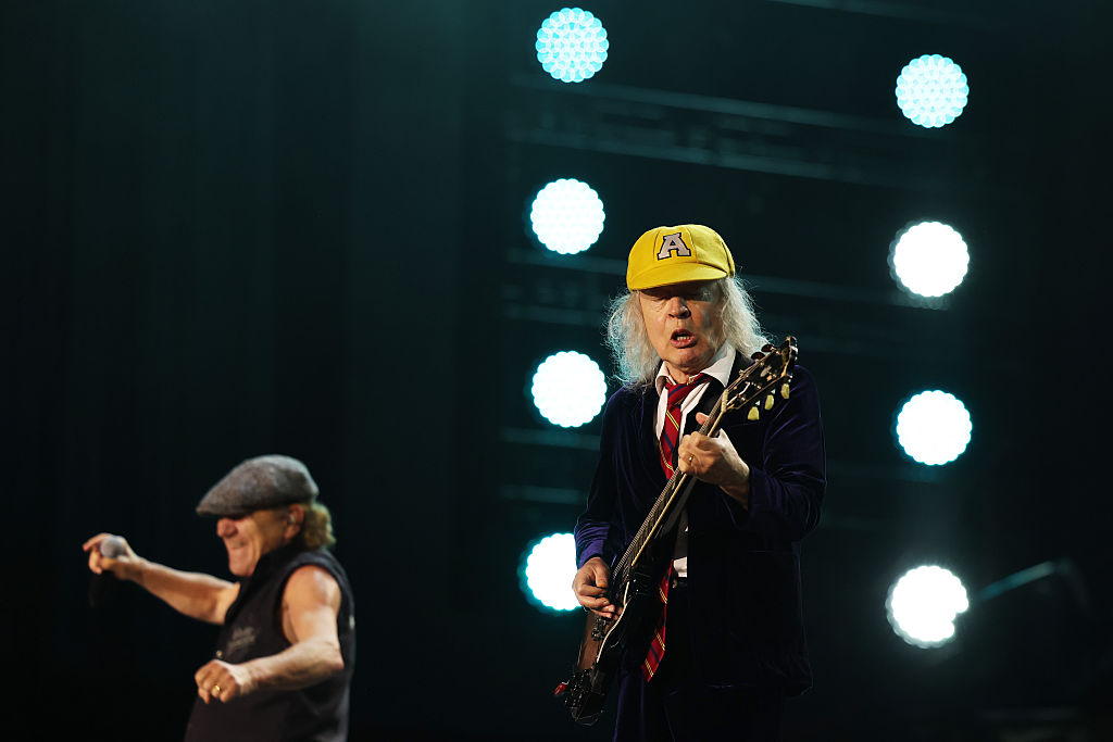 SYDNEY, AUSTRALIA - NOVEMBER 21: Brian Johnson and Angus Young of AC/DC perform at Accor Stadium on November 21, 2025 in Sydney, Australia. (Photo by Don Arnold/WireImage)