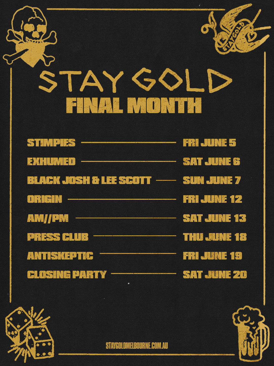 Stay Gold closing shows Melbourne