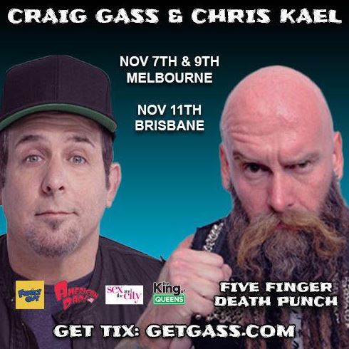 Comedy and metal collide this weekend as Craig Gass, the voice behind Family Guy, American Dad, Sex and the City, and The King of Queens, joins Chris Kael from Five Finger Death Punch for a string of wild, no filter stand up shows across Melbourne and Brisbane.