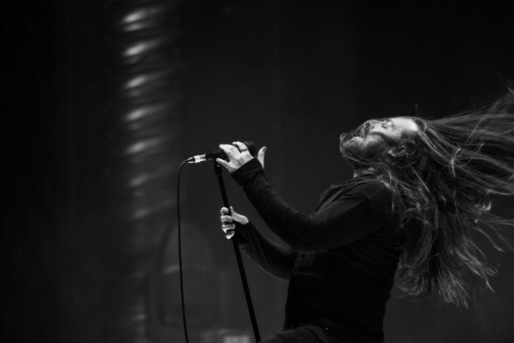 Opeth would walk out onto the stage as a haunting folk hymn blared through the speakers. As the poem would finish, the band would immediately dive into their new track ‘§1’, from their 2024 album The Last Will And Testament. With no rest, the band would also launch into classics, ‘Master’s Apprentices’ and ‘The Leper Affinity’.