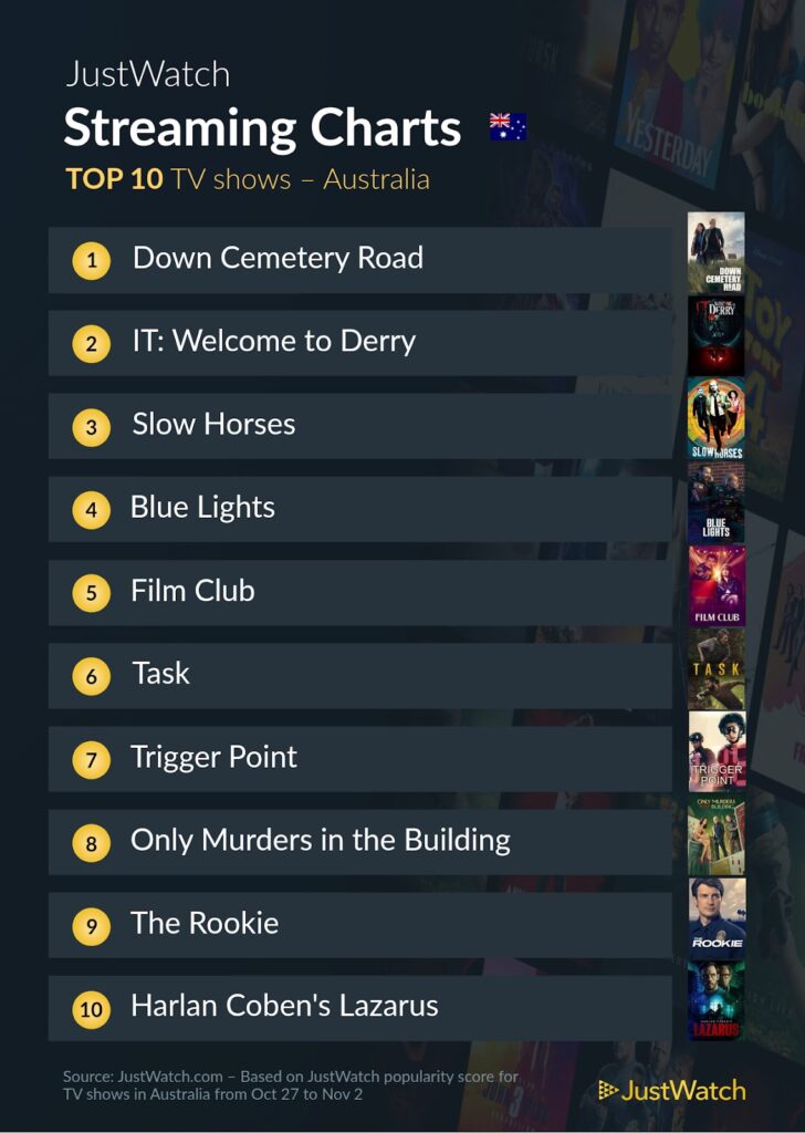 Australian Streaming Charts supplied by JustWatch.